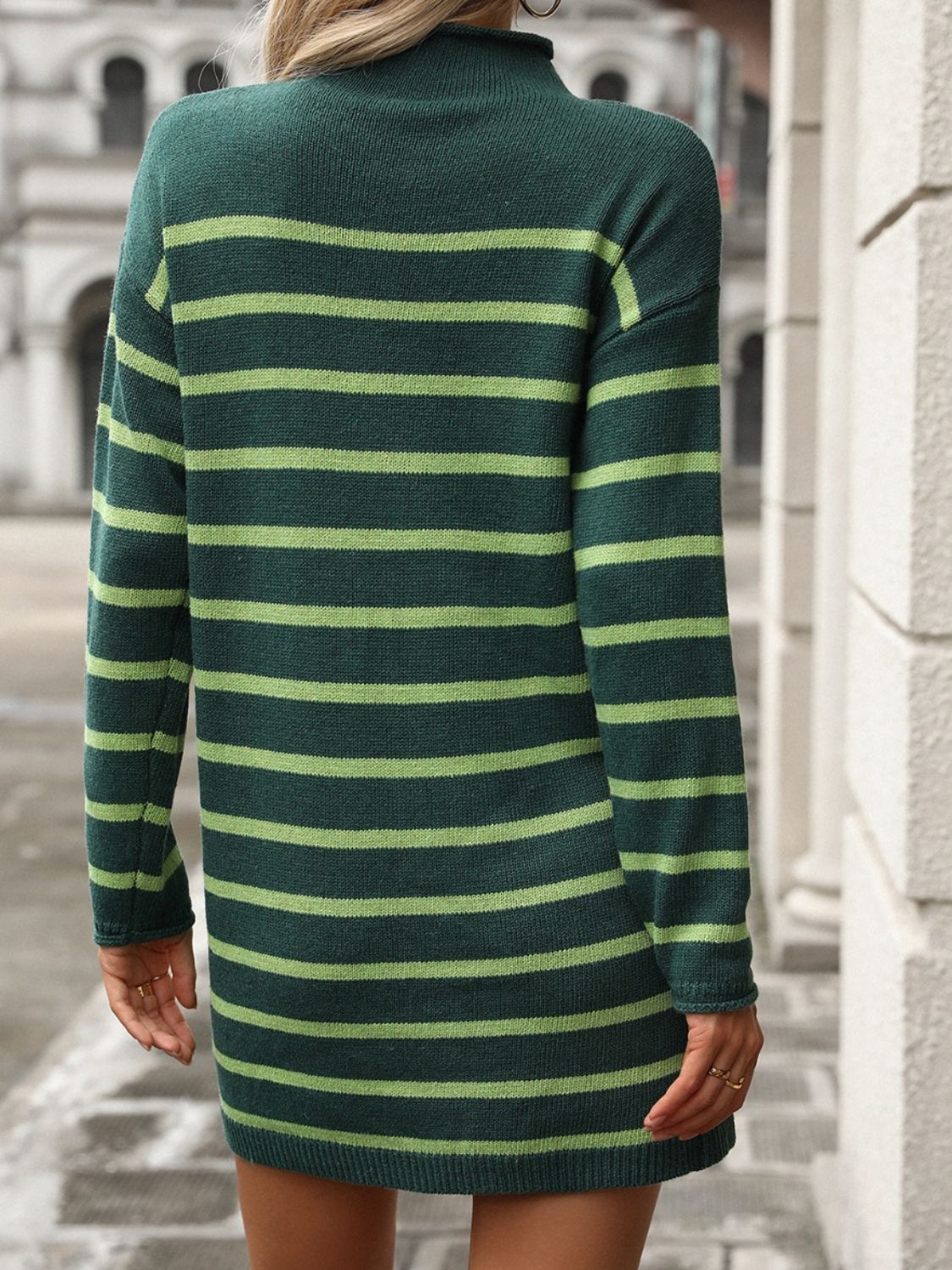 Striped Mock Neck Long Sleeve Mini Dress | Chic & Timeless