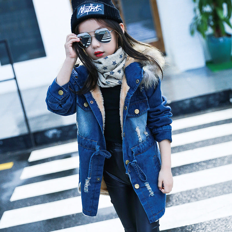 Denim Trench Coat with Velvet Padded Waist | Stylish & Warm